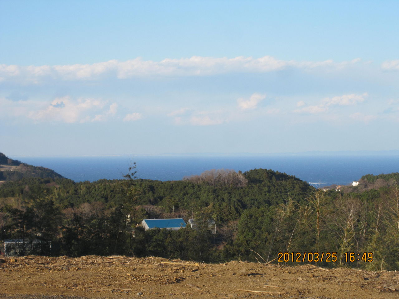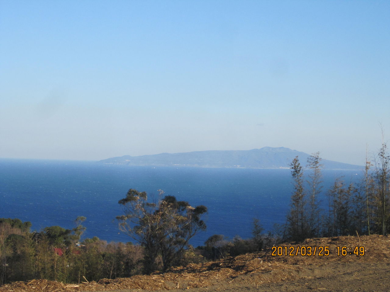 大島の左手に見える三浦半島、3月の終わりの悪天候で、この程度ですから、もっともっとよく見えます。